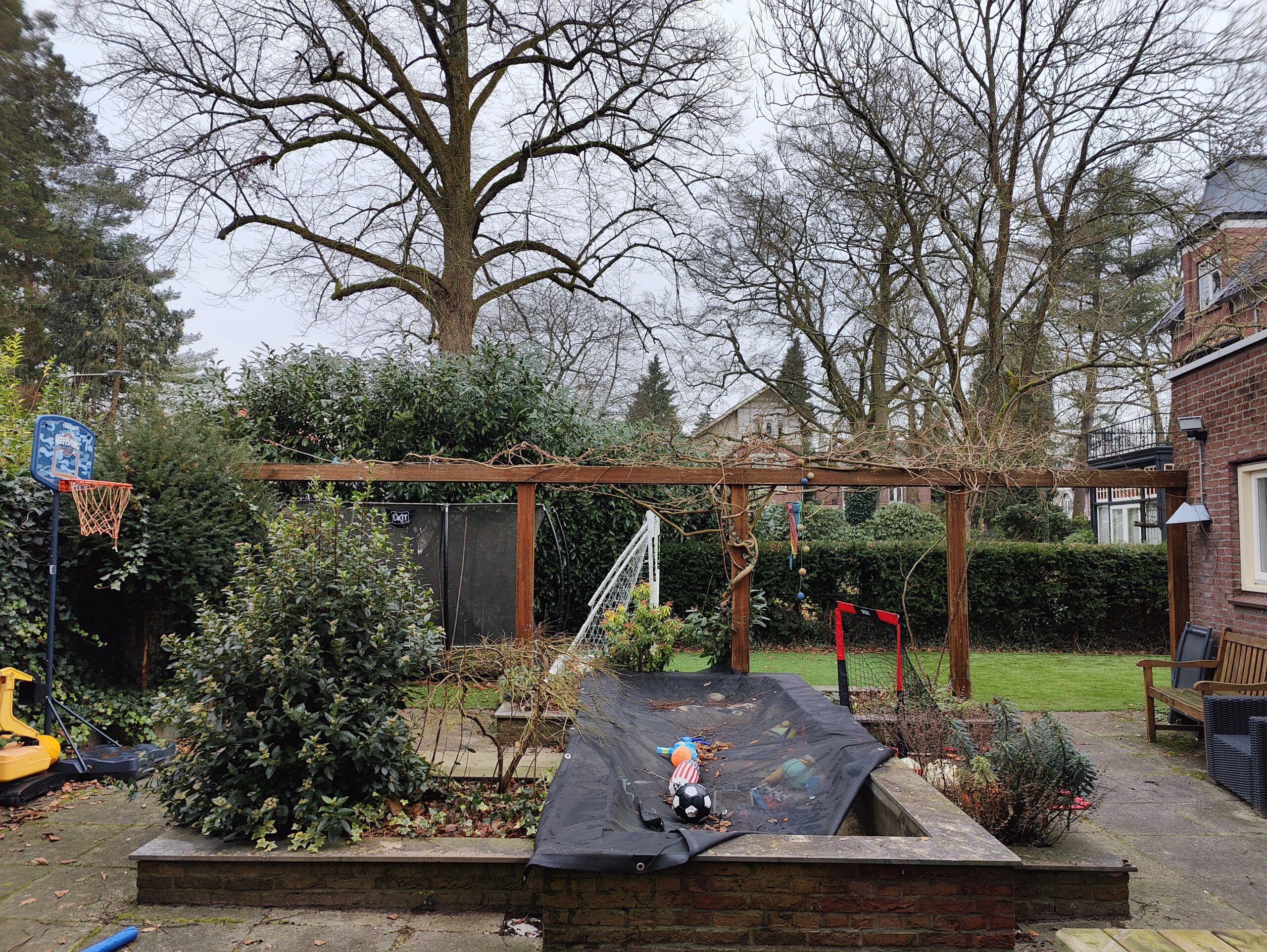 Hier had ik een pergola ontworpen met een mooie zichtlijn.